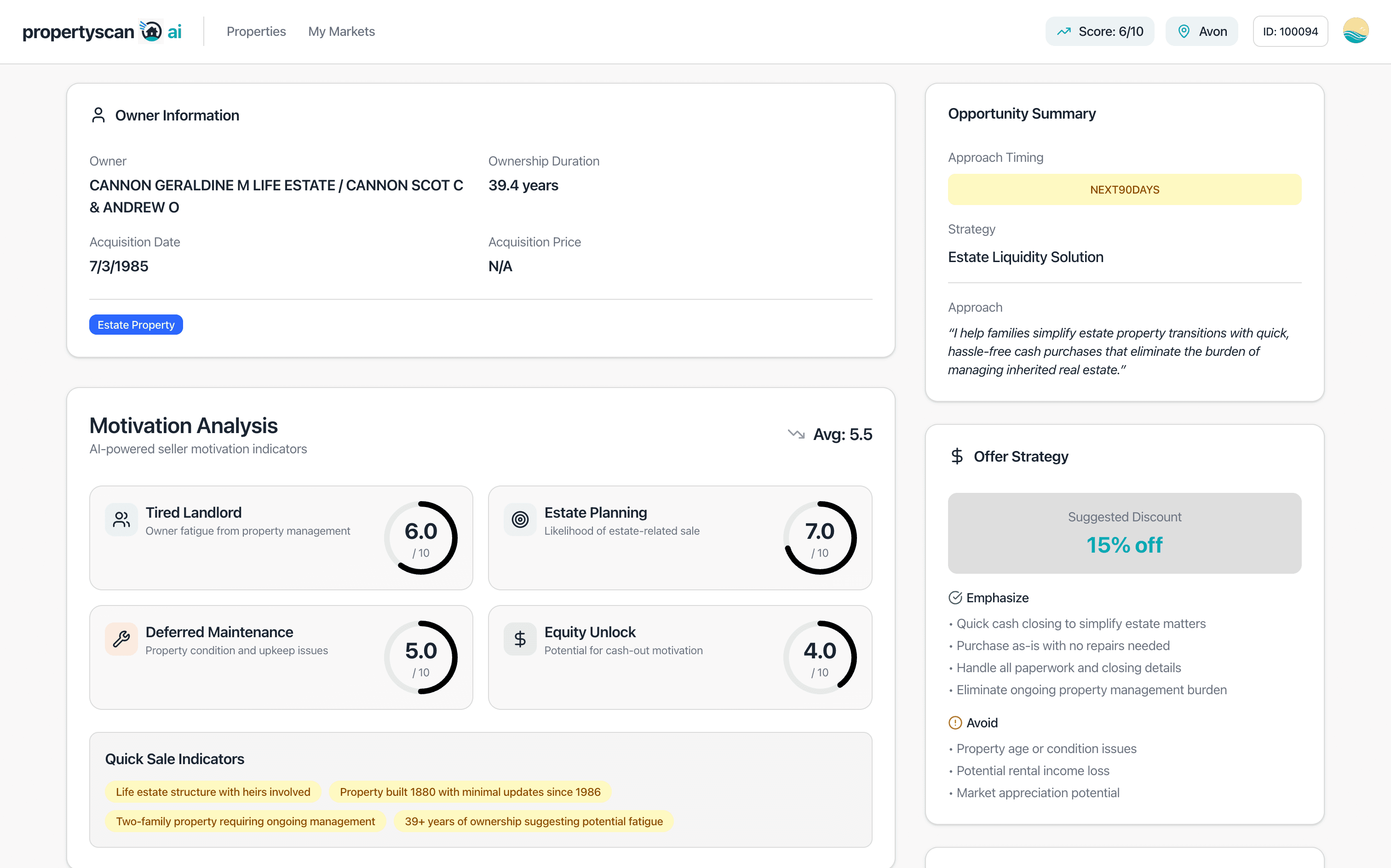Our AI finds properties owned by the same family for decades. These owners are often ready to sell without the hassle of repairs or showings. We scored 85-year ownership in Portsmouth NH just this week.